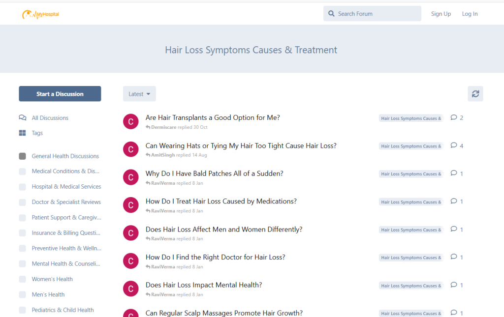 ✨ Explore shared experiences, ask questions, and get guidance inside the MyHospitalNow hair loss symptoms, causes, and treatment forum.